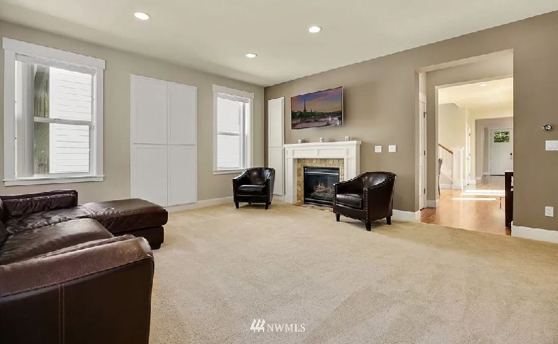 Beautifully maintained 4 bed + bonus + office, 2.5 bath home w/one of the best greenbelt lots in the neighborhood. Tons of natural light, tall ceilings, hardwood floors, gourmet kitchen w/stainless appls, granite countertops, & courtyard patio. The master bedroom & kitchen look out to a peaceful, greenbelt view. Huge 4 car tandem garage, A/C, & 2 car EV charging. Blocks from Newcastle Elementary (Issaquah schools) or gain entrance to over 30 miles of hiking trails 100 yards from your front door.